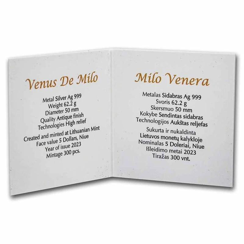 Silver coin Niue "Venus of Milos" 2023g., 62.2 grams of pure silver (0.999 proof)