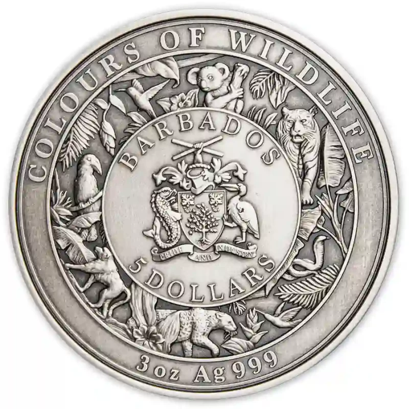 Barbados silver coin "Colors of Wildlife. Jaguar" 2024g., 93.3 grams of pure silver (0.999 proof)