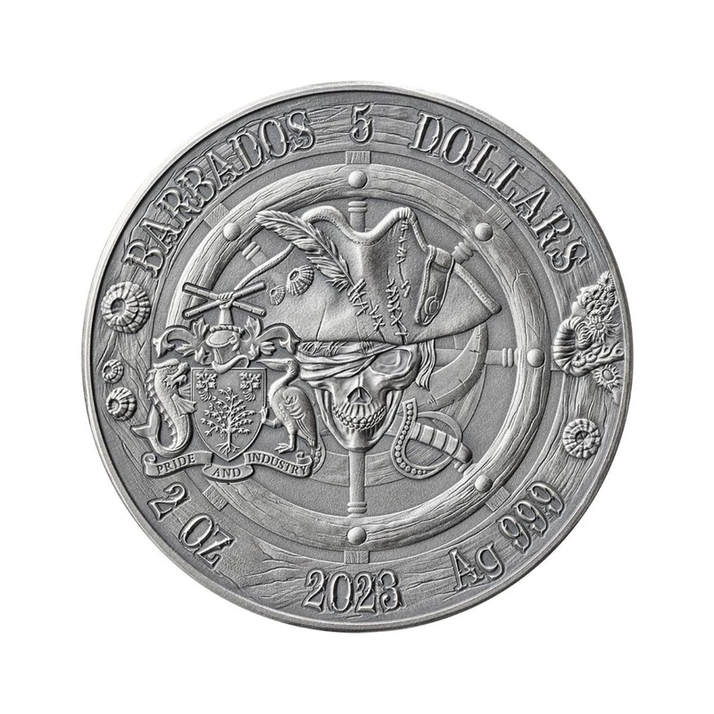 Silver coin of Barbados "Captains of Fortune. Revenge of Queen Anne" 2023, 62.2 grams of pure silver (0.999 proof)