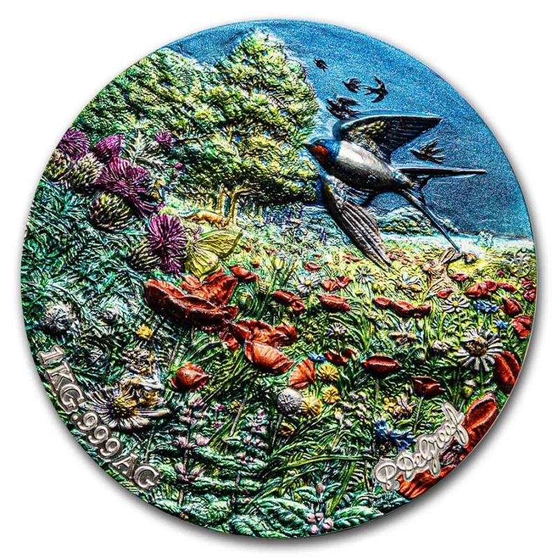 Benin silver coin "Nature in Danger. Flower Meadow" 2023, 1000 g. pure silver (0.999 proof)