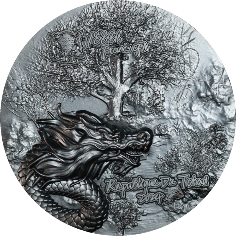 Chad silver coin "Azure Dragon. Obsidian Black" 2024, 155.5g of pure silver (0.999 proof)