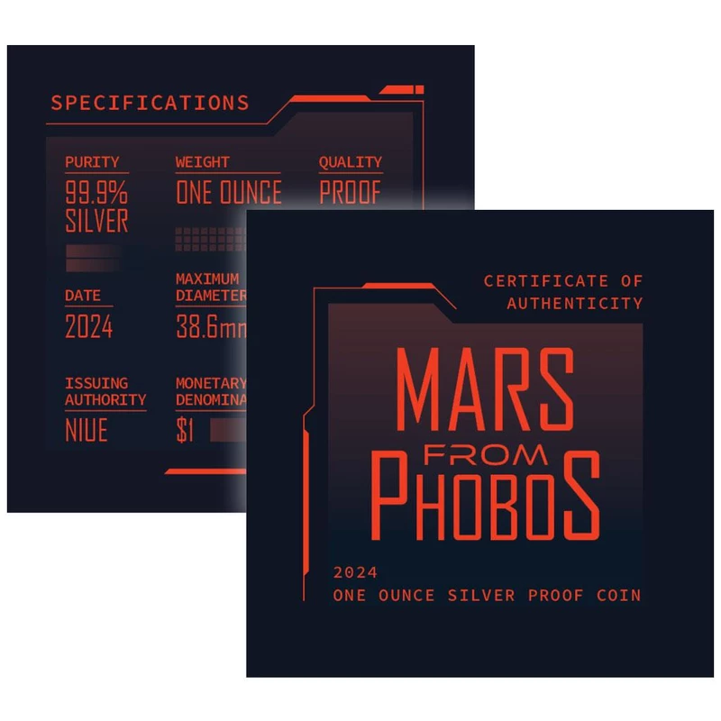 Silver coin Niue "Mars from Phobos" (proof, colorized) 2024, 31.1 g pure silver (0.999 proof).