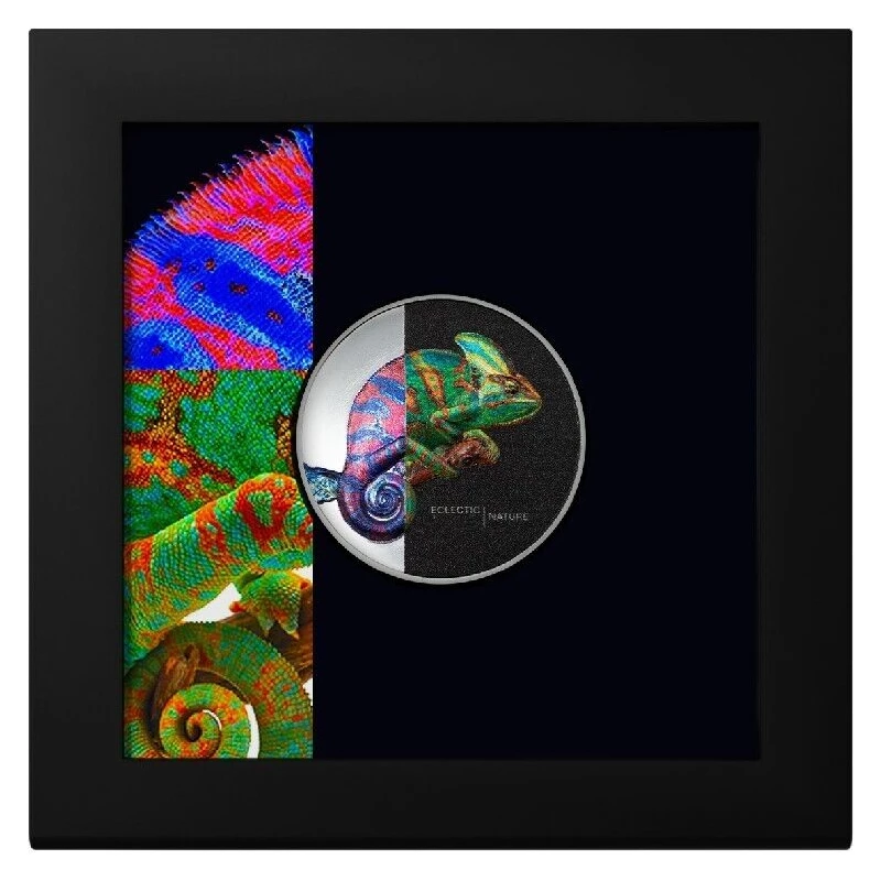 Cook Islands silver coin "Eclectic Nature. Chameleon", 2023, 31.1g, pure silver (0.999 proof)