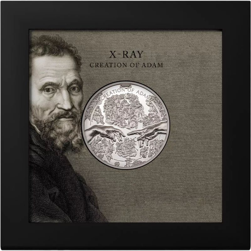Cook Islands silver coin "Roentgen. Creation of Adam" 2023, 31.1 g. pure silver (0.999 proof)
