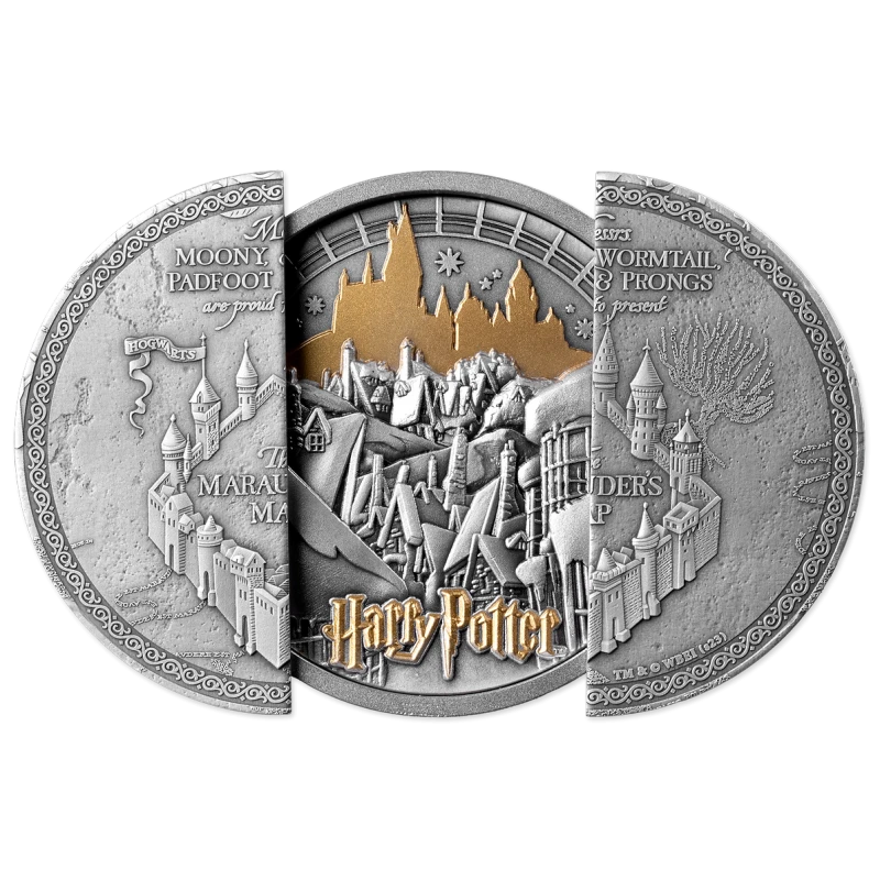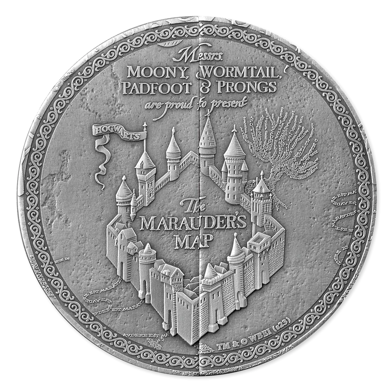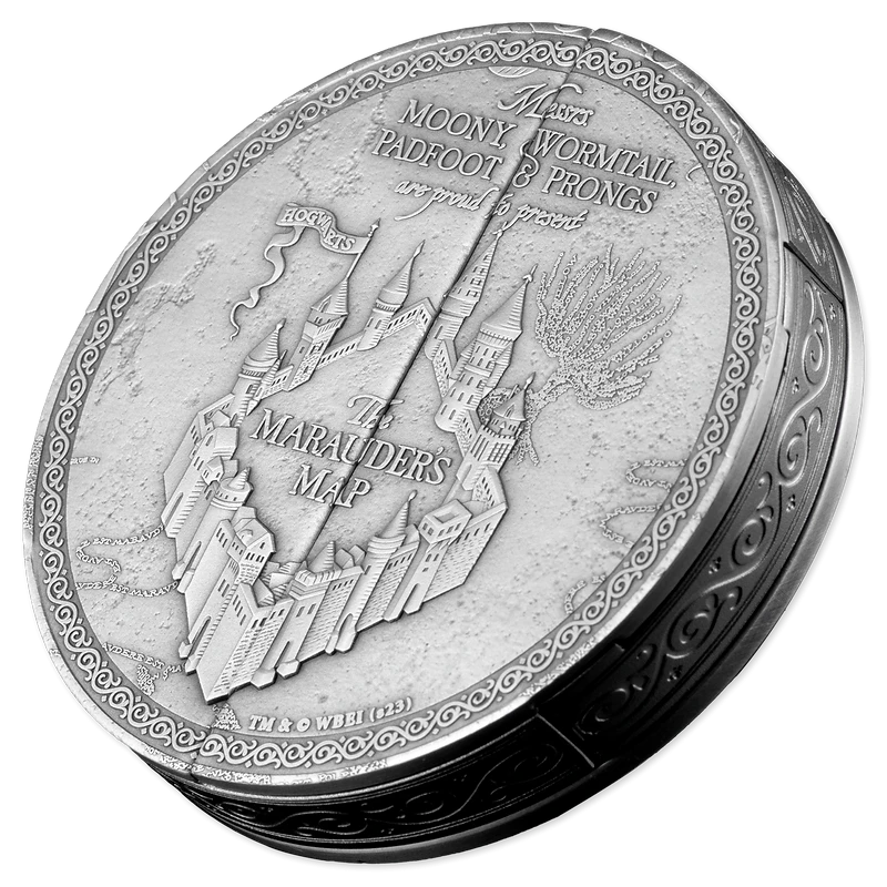 Samoa silver coin "Harry Potter. Map of the Marauders", (high relief) 2024, 155.5 g pure silver (0.999 proof)