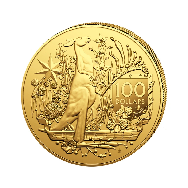 Pierwsza moneta z serii "Herb Australii" wyemitowana przez Królewską Mennicę Australijską. Na awersie oprócz tradycyjnego portretu królowej Elżbiety II umieszczono wizerunek strusia, na rewersie - symbol Australii - kangura. Nakład monety wynosi 5000 sztuk.