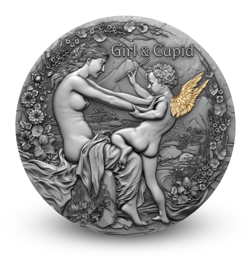 Ta wykwintna srebrna moneta o wadze 2 uncji przedstawia scenę poetyckiej miłości między dziewczyną a Kupidynem, symbolem inspiracji i namiętności. Antyczne wykończenie, wspaniały relief i selektywne złocenie podkreślają wyrafinowane piękno kompozycji. Rewers przedstawia elegancką dziewczynę przyjmującą miłość czarującego Kupidyna - oda do ludzkich uczuć i wiecznej harmonii. Moneta jest wydawana w eleganckim etui z certyfikatem autentyczności i jest ograniczona do zaledwie 500 sztuk na całym świecie.
