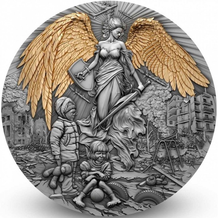 Ta wspaniała srebrna moneta o wadze 2 uncji ucieleśnia wizerunek anioła stróża - niebiańskiego obrońcy, który chroni ludzi przed złem i cierpieniem. Rewers przedstawia anioła z mieczem i tarczą, chroniącego dzieci przed nieszczęściem. Imponujący relief, wykwintne złocenia i antyczne wykończenie tworzą uderzające wrażenie głębi i światła. Moneta została wydana w limitowanej edycji 500 sztuk na całym świecie i jest dostarczana z certyfikatem autentyczności.
