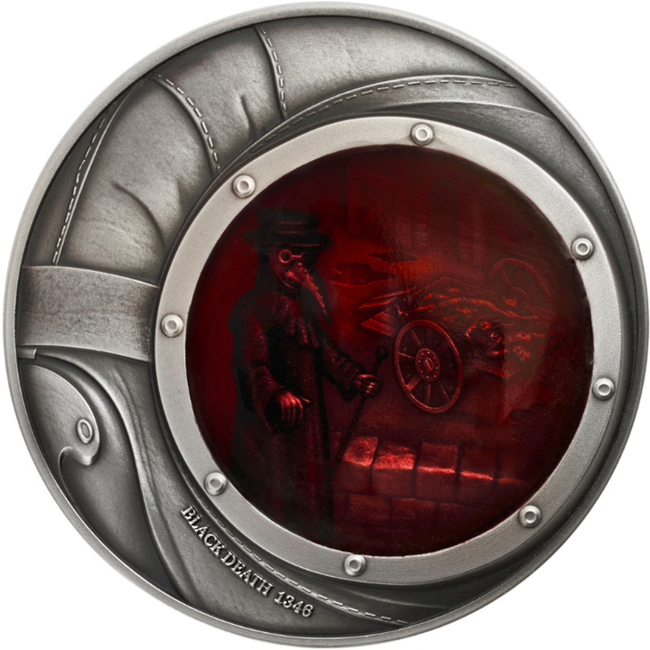 Srebrna moneta Niue "Czarna Śmierć - Plaga. Ludzkie tragedie" 2023, 62,2 grama czystego srebra (próba 0,999)