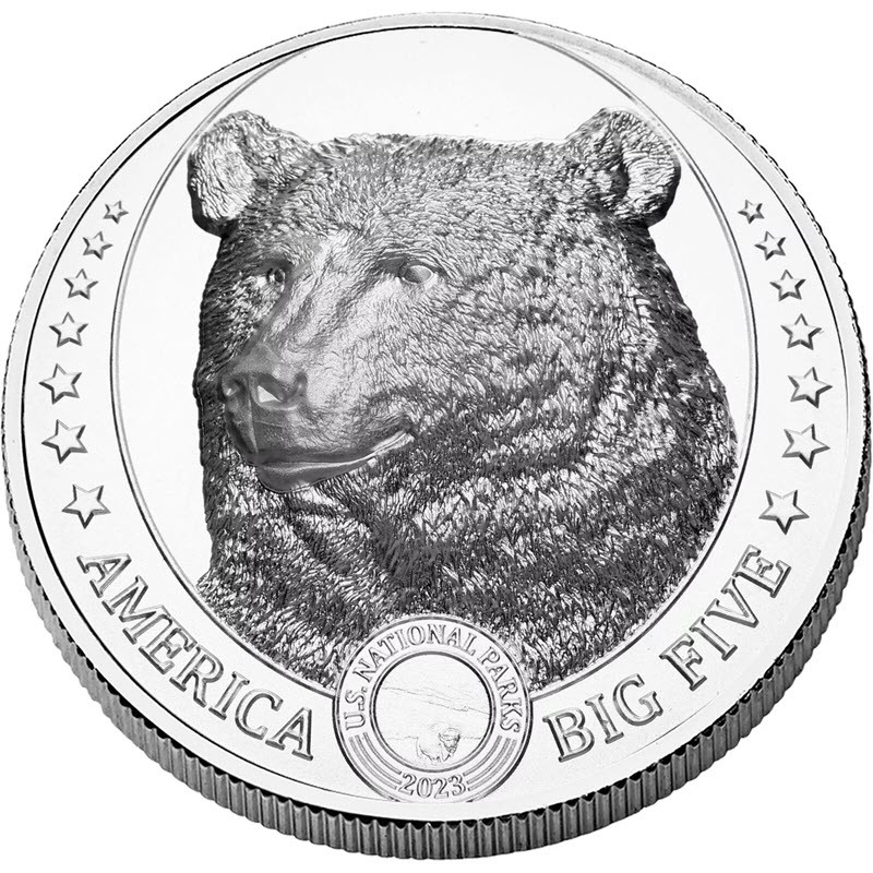 Srebrna moneta kolekcjonerska Fidżi Ameryka Wielka Piątka Niedźwiedź Brunatny 2023 1 uncja czystego srebra 0,999