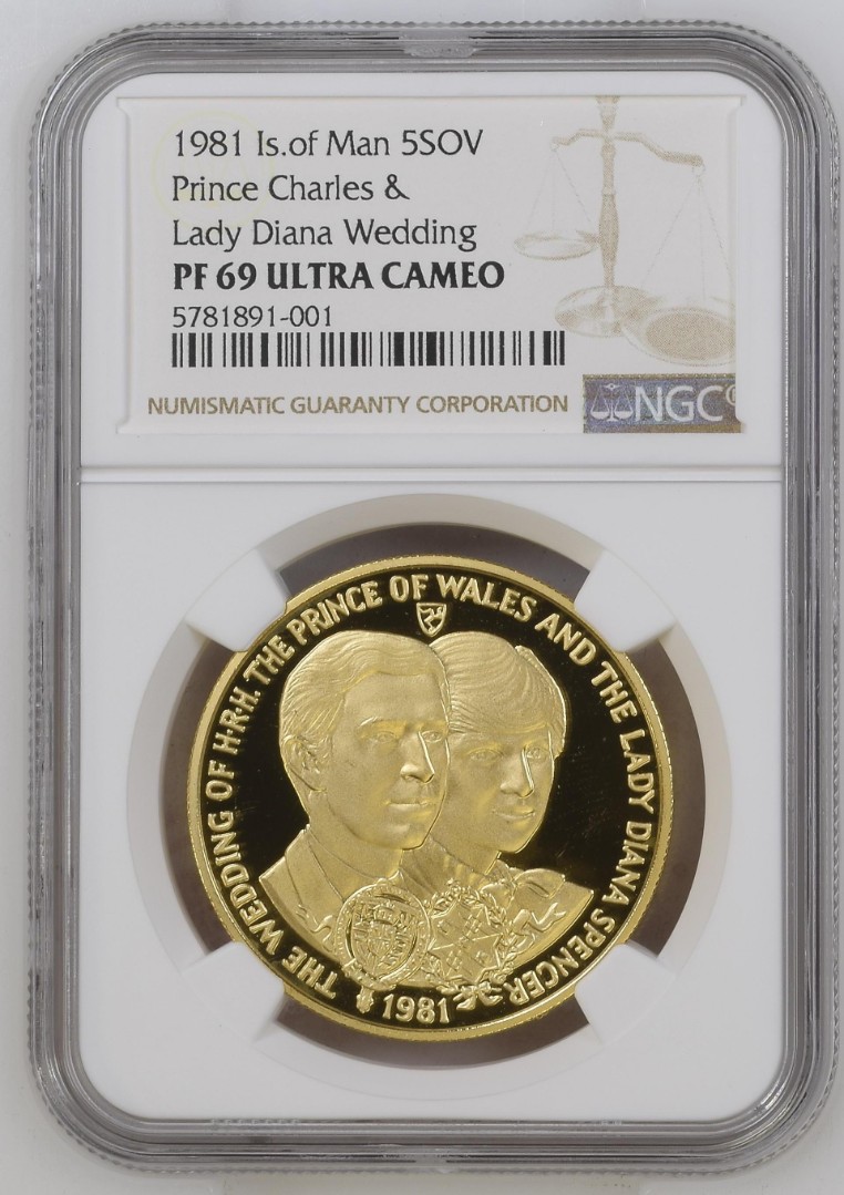 Wyspa Man: złota moneta Ślub księcia Karola i Diany Spencer, 1981 WYSOKOŚĆ 36,61 g
