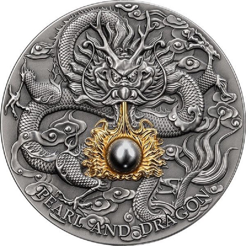 Ta niezwykła srebrna moneta o wadze 2 uncji poświęcona jest smokowi - najbardziej czczonemu i legendarnemu stworzeniu w chińskiej mitologii oraz symbolowi mocy, mądrości i szczęścia. Moneta posiada antyczne wykończenie z imponującym wysokim reliefem, częściowym złoceniem i efektowną wstawką z czarnej perły. Projekt przedstawia chińskiego smoka z magiczną perłą, podczas gdy selektywne złocenie wokół niego tworzy efekt ognistego oddechu smoka. Moneta jest dostarczana w etui z certyfikatem autentyczności. Limitowany nakład wynosi zaledwie 500 sztuk.