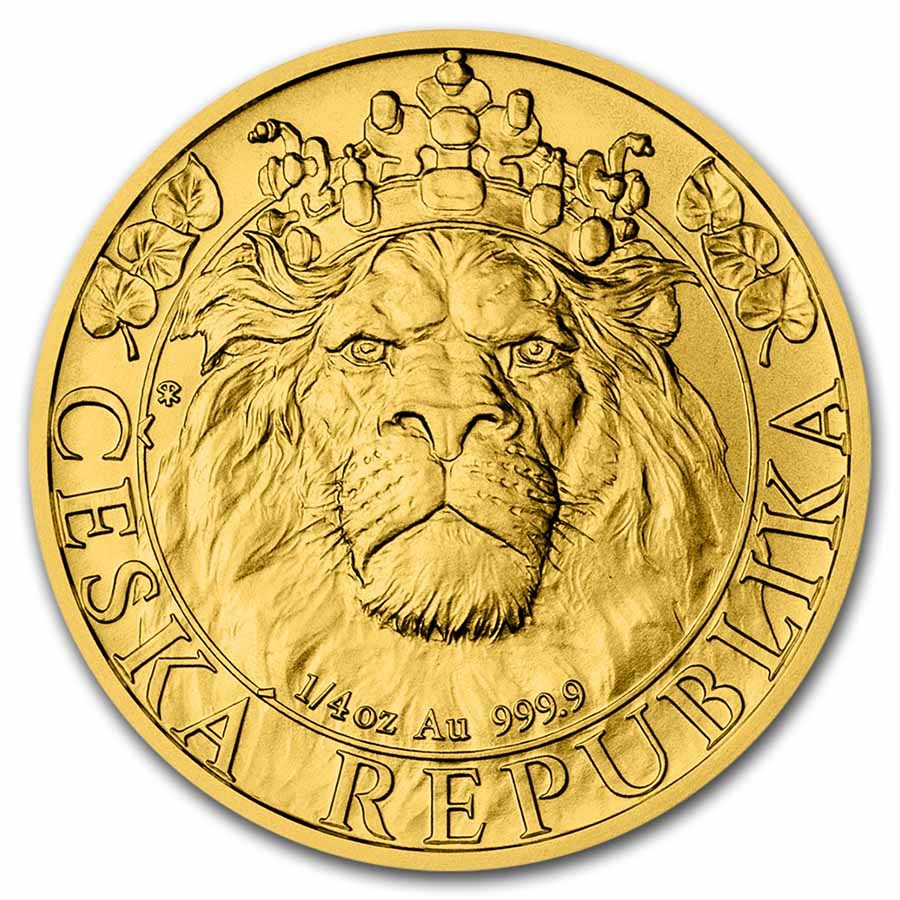 Złoty Lew Czeski 1/4 uncji 2022 jest kontynuacją popularnej serii monet z Mennicy Czeskiej z całkowicie zaktualizowanym projektem w czwartej edycji. Rewers przedstawia słynnego czeskiego lwa z dwoma ogonami, koroną św. Wacława i gałązką lipy, symbolami czeskiej państwowości. Awers przedstawia profilowy portret Jej Królewskiej Mości Królowej Elżbiety II, nominał i rok emisji. Moneta zawiera 1/4 uncji czystego złota próby 9999 i jest limitowaną edycją liczącą zaledwie 4 970 sztuk.