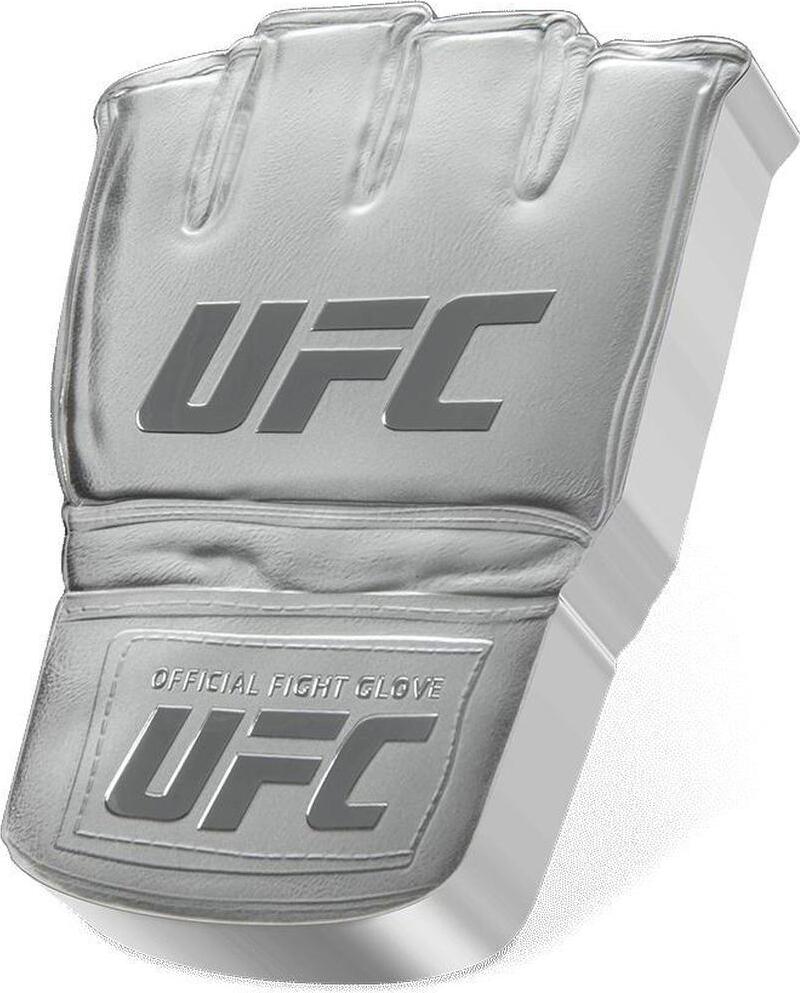 Ta imponująca srebrna moneta o wadze 3 uncji została zaprojektowana w kształcie kultowej rękawicy UFC, symbolu siły, historii i ciągłej ewolucji sportu walki. Moneta została wybita w wersji Proof i zawiera lustrzane logo UFC® na matowym, teksturowanym tle. Unikalny projekt i limitowany nakład 1000 sztuk sprawiają, że jest to pożądany przedmiot kolekcjonerski. Każda sztuka jest dostarczana w stylowym, markowym opakowaniu z certyfikatem autentyczności i indywidualnym numerem. Moneta ma status prawnego środka płatniczego i oficjalnej licencji UFC.