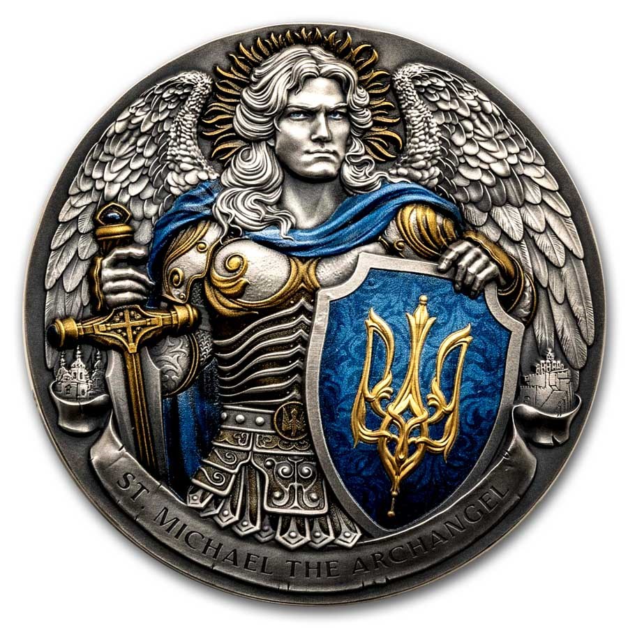 Ta znacząca srebrna moneta o wadze 5 uncji jest poświęcona Świętemu Michałowi Archaniołowi, ponadczasowemu symbolowi nadziei, siły i ochrony. Moneta ma antyczne wykończenie i wysoki relief, jest wzbogacona o częściowy kolorowy nadruk i posiada numerowaną krawędź, podkreślając jej kolekcjonerski charakter. Wizerunek Archanioła Michała, przedstawiony w kolorach ukraińskiej flagi, przekazuje potężne przesłanie duchowej opieki i boskiego wsparcia w trudnych czasach. Moneta jest prezentowana w etui i opatrzona certyfikatem autentyczności. Nakład jest ograniczony do zaledwie 500 sztuk na całym świecie.