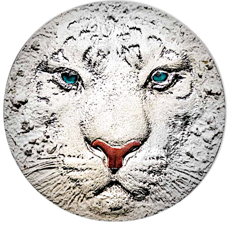 Ta imponująca srebrna moneta o wadze 3 uncji wyznacza początek serii White Hunters i jest poświęcona białemu tygrysowi. Moneta charakteryzuje się wysokim reliefem, antycznym wykończeniem i innowacyjnym efektem lodu/śniegu, który tworzy iluzję kryształków lodu na powierzchni. Rewers przedstawia białego tygrysa z wyrazistymi niebieskimi oczami i różowym nosem, oddając piękno i siłę tego rzadkiego drapieżnika. Moneta jest prezentowana w eleganckim etui i posiada certyfikat autentyczności. Nakład jest ograniczony do 369 sztuk na całym świecie.