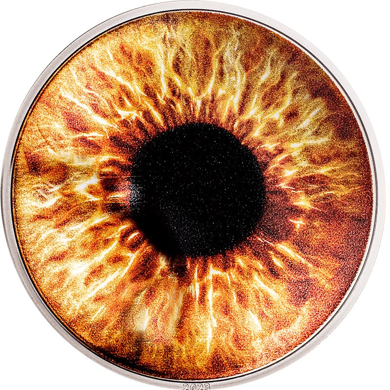 Ta elegancka srebrna moneta o wadze 1 uncji urzeka tajemniczą atmosferą i subtelnym nawiązaniem do magii orzechowych oczu. Ekspresyjna tęczówka, oddana w ciepłym odcieniu orzechowego brązu, jest pokazana w zbliżeniu, przypominając żywy płomień i przyciągając widza niezwykłą głębią koloru. Wybita w jakości Proof moneta jest wzbogacona o uderzające kolory, które podkreślają artystyczny charakter projektu. Moneta jest dostarczana w markowym etui z certyfikatem autentyczności. Limitowany nakład wynosi 1 500 sztuk na całym świecie.
