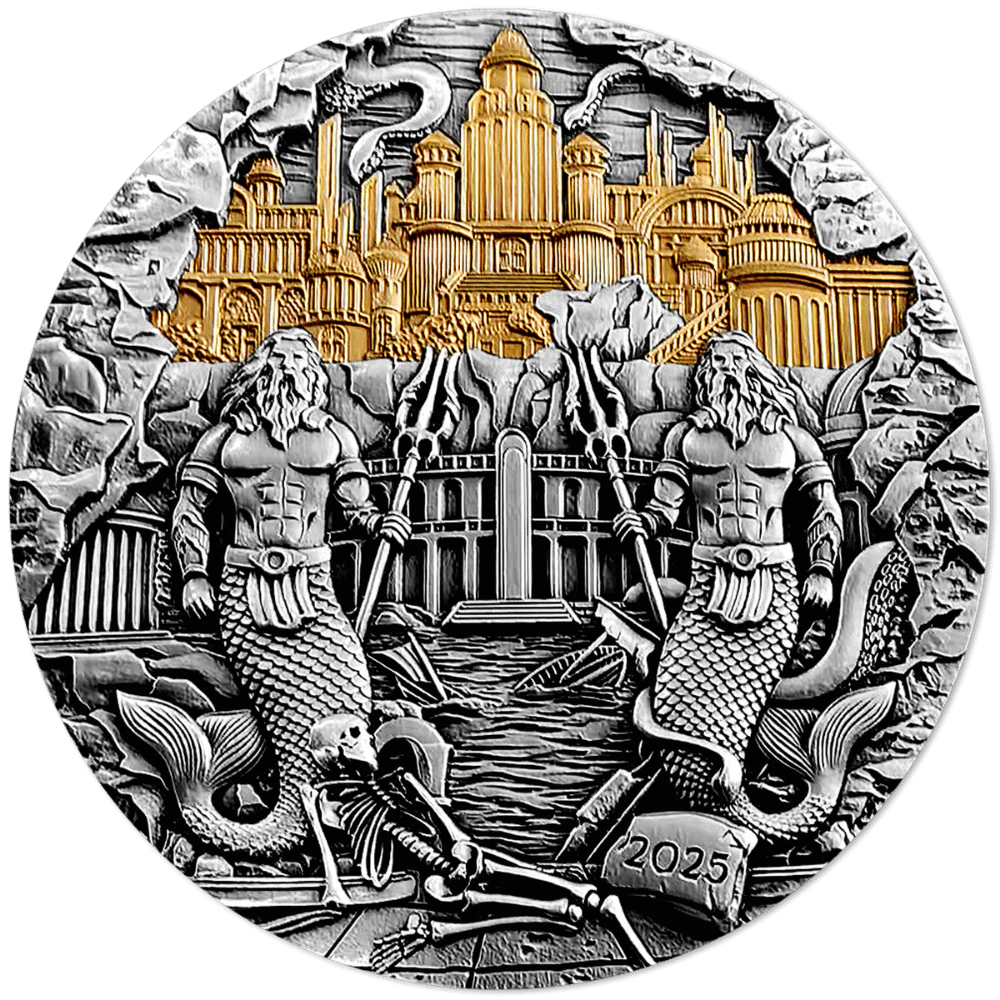 Samoa: kolekcjonerska srebrna moneta Atlantyda 2025 (pozłacana), 155,5 g czystego srebra (0,999)