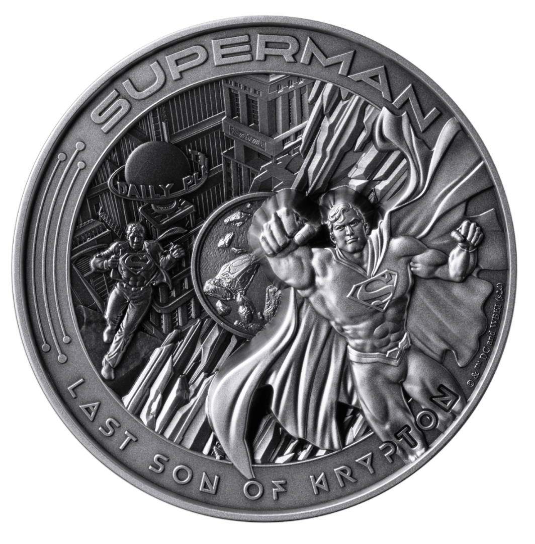 To imponujące wydanie oddaje hołd Supermanowi, pierwszemu i najbardziej kultowemu superbohaterowi z uniwersum DC. Moneta posiada antyczne wykończenie i zaawansowane wielowarstwowe techniki bicia, które zwiększają głębię i efekt wizualny projektu. Rewers przedstawia Supermana szybującego przez panoramę Metropolis z legendarnym budynkiem Daily Planet w tle, wraz z elementami tematycznymi nawiązującymi do kryptonitu. Awers przedstawia herb Samoa wraz z napisami "SAMOA", "10 oz Ag .999", "2025" i nominałem "10 DOLLARS"."Emitowana jako prawny środek płatniczy w ściśle ograniczonym nakładzie zaledwie 250 sztuk, każda moneta posiada unikalny numer seryjny i jest prezentowana w tematycznym etui z certyfikatem autentyczności, co czyni ją wyjątkowym przedmiotem kolekcjonerskim zarówno dla numizmatyków, jak i fanów DC.