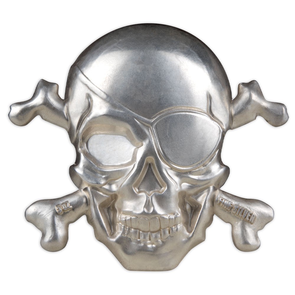 Srebrna moneta Barbados "Wyspa Skarbów, Czaszka" 2022, 155,5 grama czystego srebra (próba 0,999).