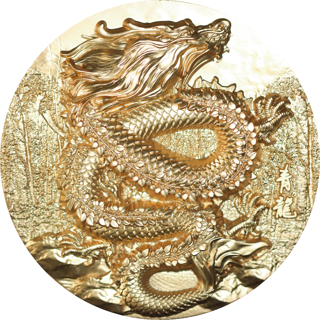 Srebrna moneta Chada "Lazurowy Smok" (pozłacana) 2024, 155,5 g czystego srebra (próba 0,999).
