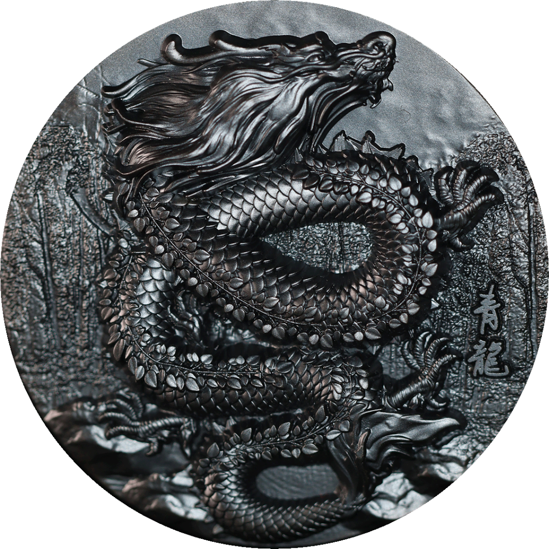 Srebrna moneta czadowa "Lazurowy Smok. Obsydianowa czerń" 2024, 155,5 g czystego srebra (próba 0,999)