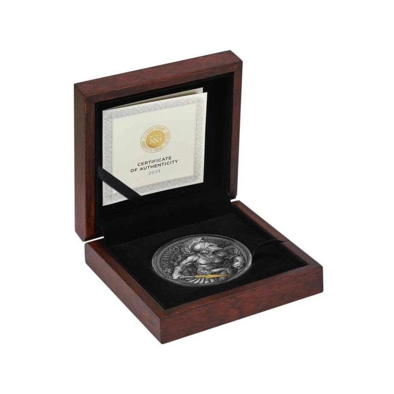 Srebrna moneta Kamerun "Wielka mitologia grecka. Achilles" 2023 g., 62,14 g. czystego srebra (próba 0,999)