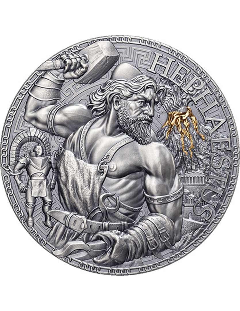 Unikalna srebrna moneta Kamerunu przedstawia Hefajstosa, potężnego kowala, który może zrobić wszystko