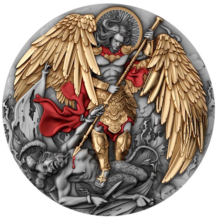 Ta wyjątkowa srebrna moneta o wadze 2 uncji poświęcona jest triumfowi sprawiedliwości i ochronie ludzkości, ucieleśnionej w wizerunku potężnego niebiańskiego wojownika światła, Świętego Archanioła Michała. Dzierżąc miecz prawości i sprawiedliwości, symbolizuje on zwycięstwo dobra nad złem. Moneta ma antyczne wykończenie, jest uzupełniona selektywnym złoceniem i jest dostarczana w estetycznym etui z certyfikatem autentyczności. Nakład jest ściśle ograniczony - tylko 500 sztuk na całym świecie.