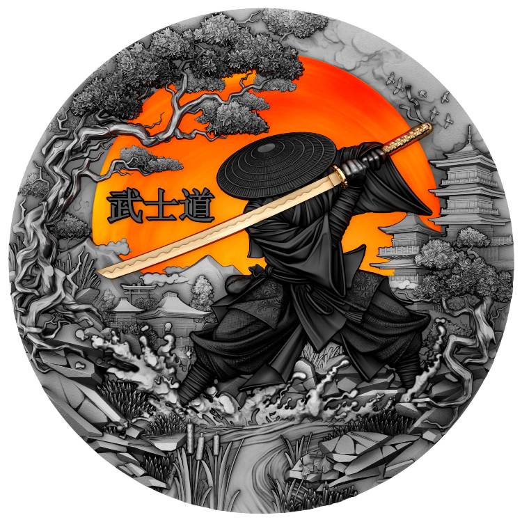 Ta wyjątkowa srebrna moneta o wadze 2 uncji upamiętnia starożytny japoński kodeks honorowy Bushido, który przez wieki inspirował samurajów. Rewers przedstawia odważnego samuraja z kataną stojącego na tle jasnego wschodzącego słońca - symbolu Japonii. Wykonana w antycznym wykończeniu, moneta łączy w sobie misterny wysoki relief i selektywne złocenie, aby podkreślić jej imponujący wygląd. Moneta jest dostarczana w tematycznym etui z certyfikatem autentyczności. Nakład jest ograniczony do zaledwie 500 sztuk na całym świecie.