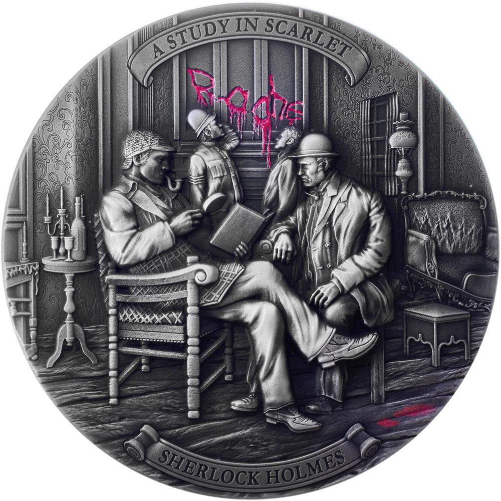 Srebrna moneta Niue "Sherlock Holmes. Etiuda w karmazynie" 2024 g, 62,2 g czystego srebra (próba 0,999)