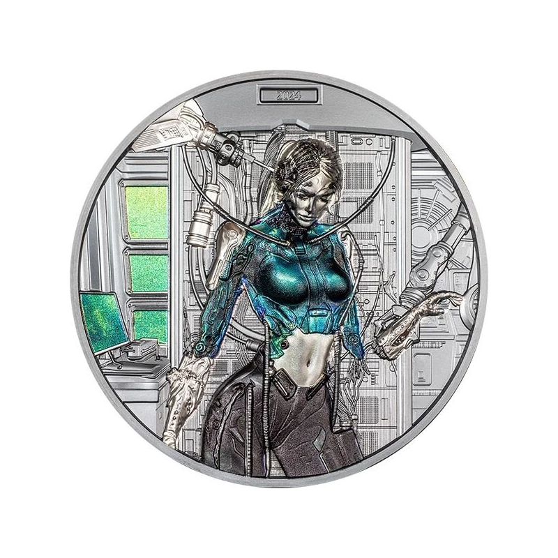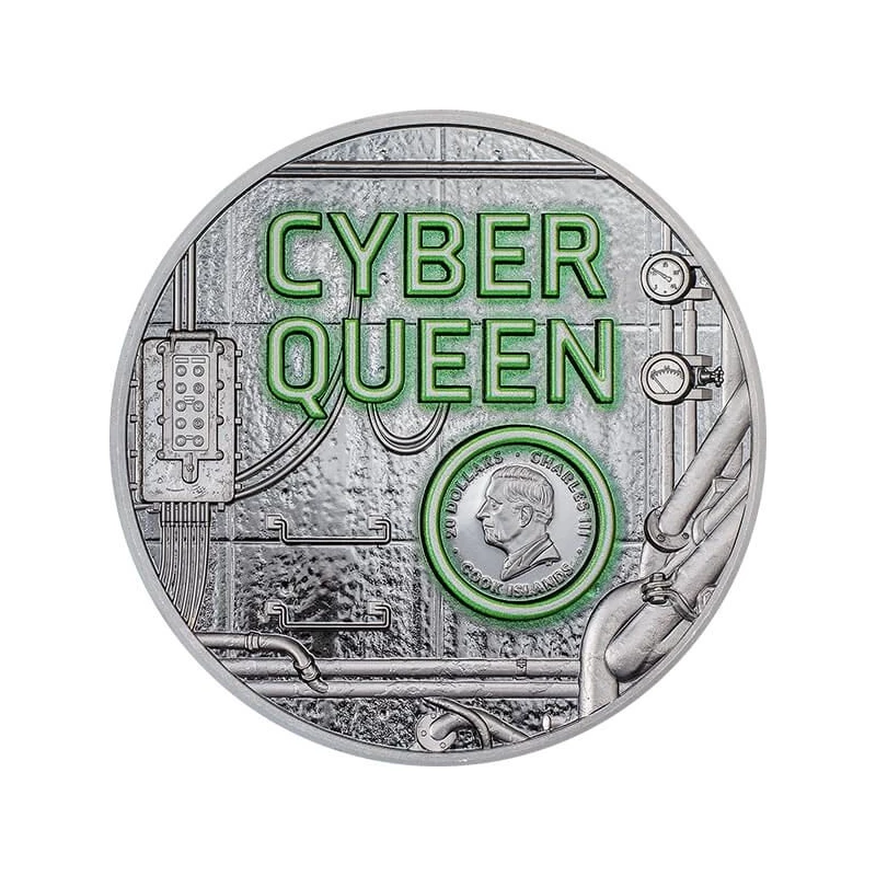 Srebrna moneta z Wysp Cooka "Cyber Queen - Rebirth" (dowód, wysoki relief), 2024, czyste srebro, 93,3 g (próba 0,999)