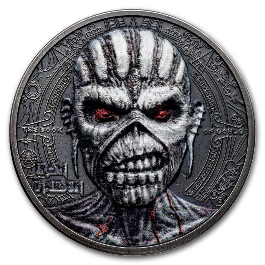 Srebrna moneta z Wysp Cooka "Księga dusz. IRON MAIDEN", (proof) 2024, 62,2 g., czyste srebro (0,9999 proof)