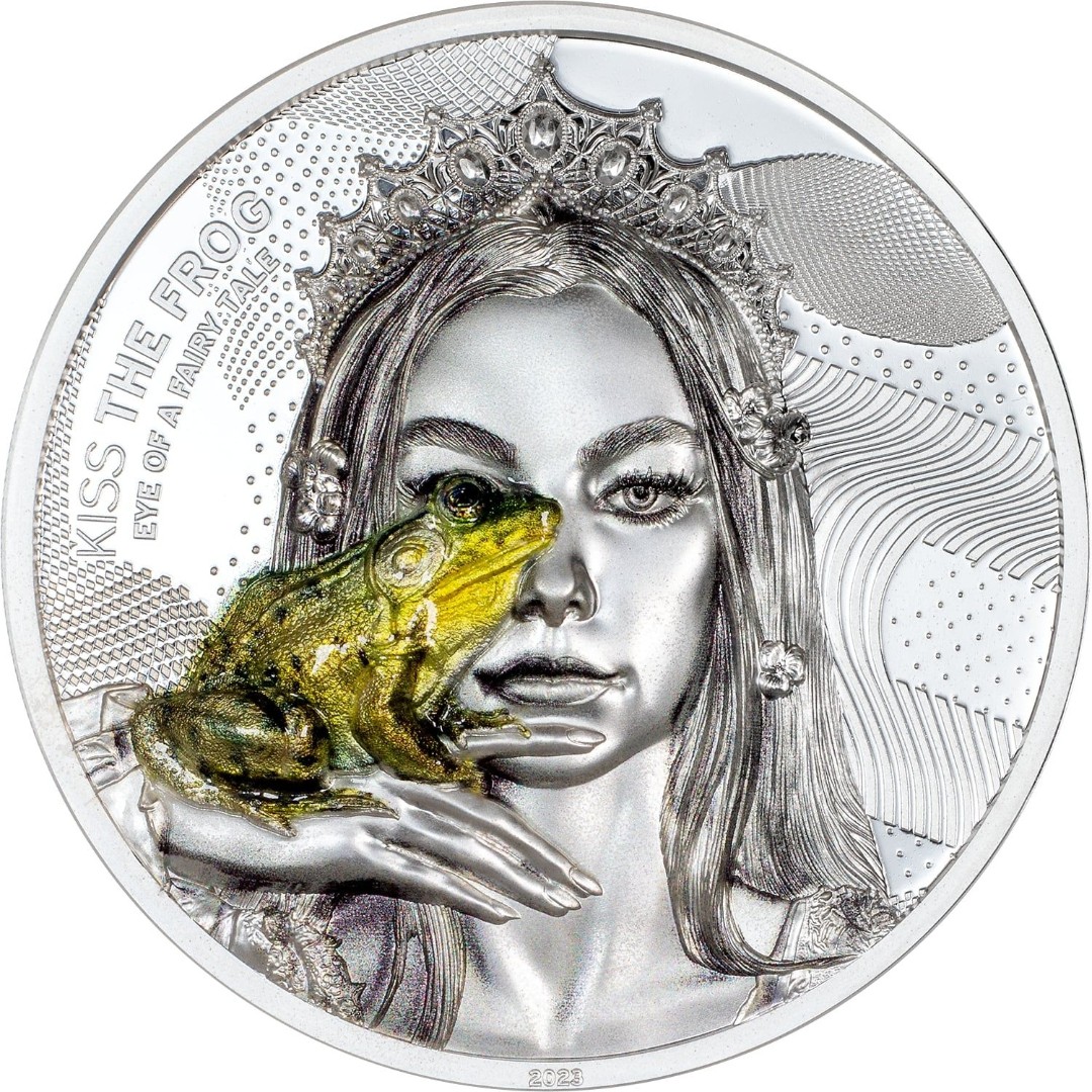 Srebrna moneta z Wysp Cooka "Pocałunek i żaba: Oko wróżki", 2023 r., 62,2 g, czyste srebro (próba 0,999)