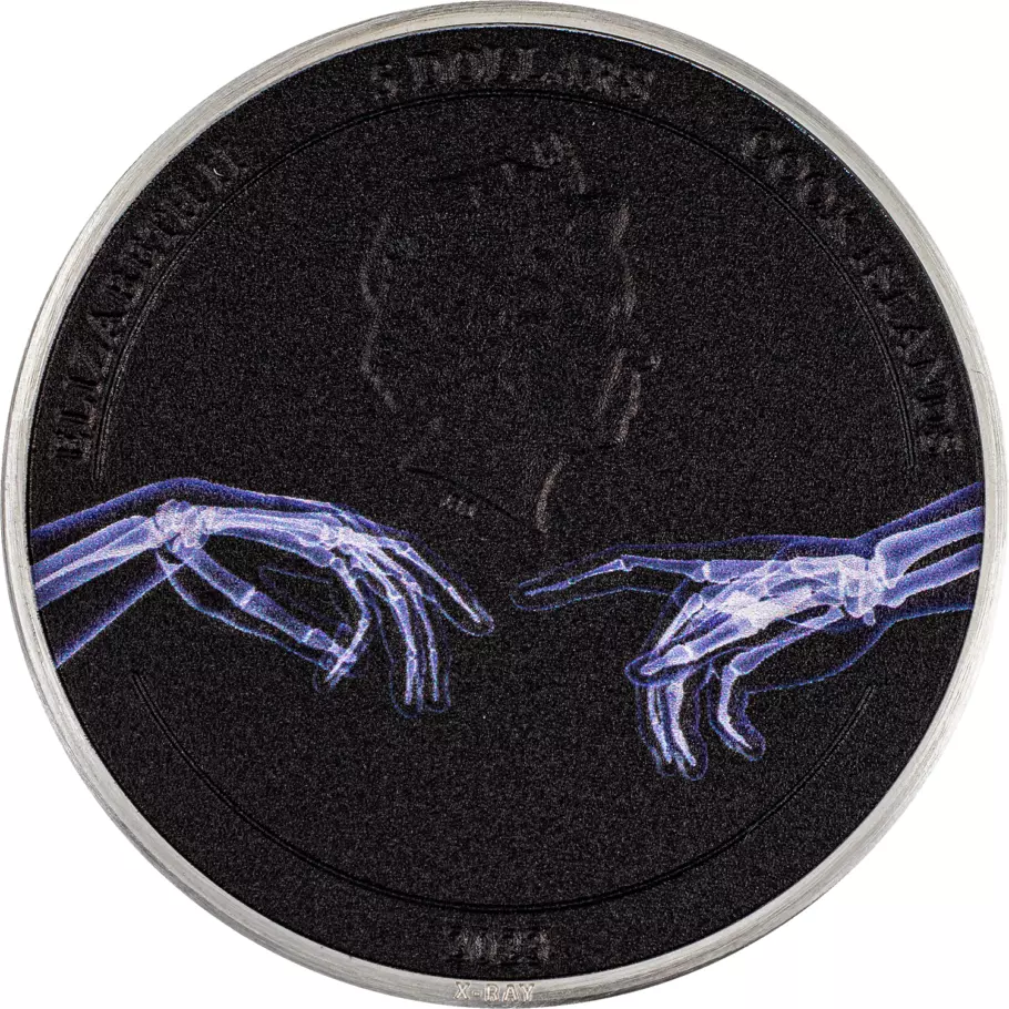 Srebrna moneta z Wysp Cooka "Roentgen. Stworzenie Adama" z 2023 r., 31,1 g czystego srebra (próba 0,999)