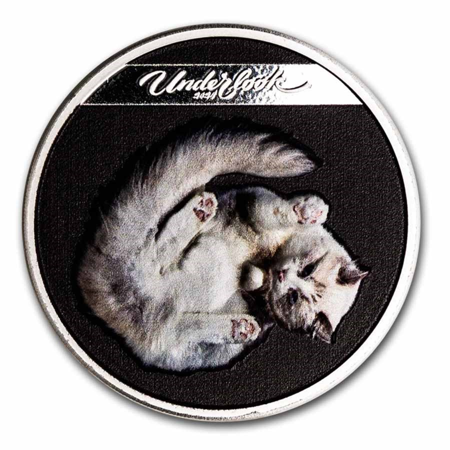Srebrna moneta Wyspy Cooka "Widok z dołu - Kot" (próbna, kolorowa) 2024, 31,1 g czystego srebra (próba 0,9999)