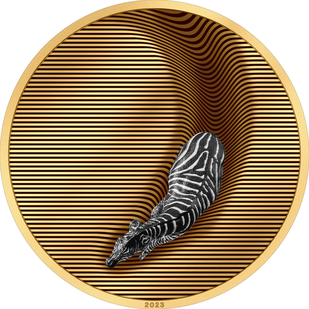 Srebrna moneta Palau "Kamuflaż natury. Zebra" (pozłacana, próbna), 2023, 155,5 g, czyste srebro (próba 0,999)