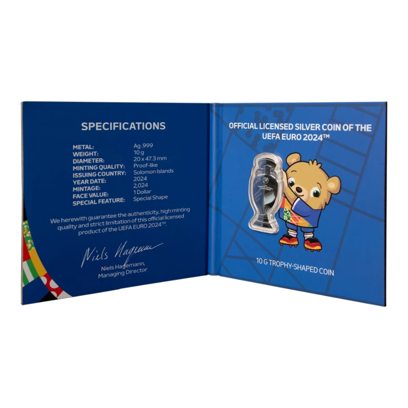 Srebrna moneta Wyspy Salomona "UEFA EURO Football 2024" (proof) 2024, 10,0 g czystego srebra (próba 0,999)