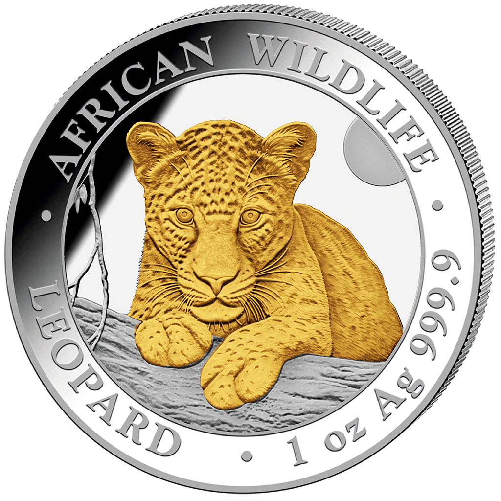 Srebrna moneta Somalia African Wildlife Leopard 2025 pozłacana 1 uncja