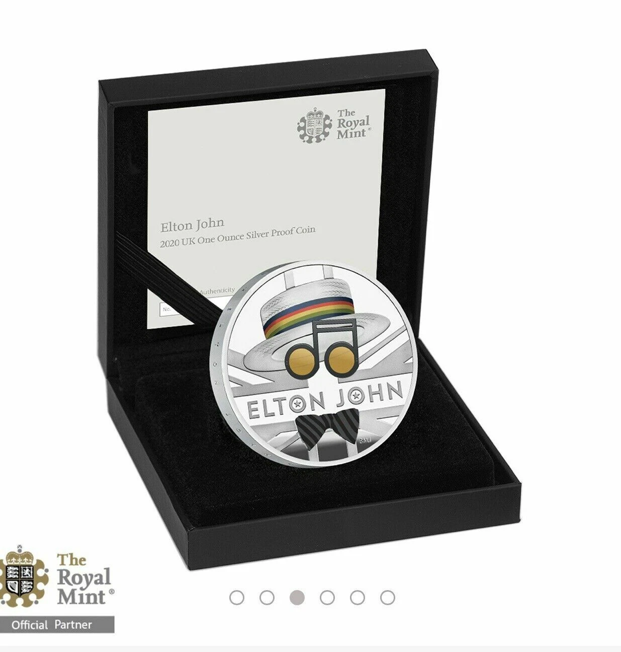 Wielka Brytania: srebrna moneta Elton John 2020 Proof w kolorze 1 uncji
