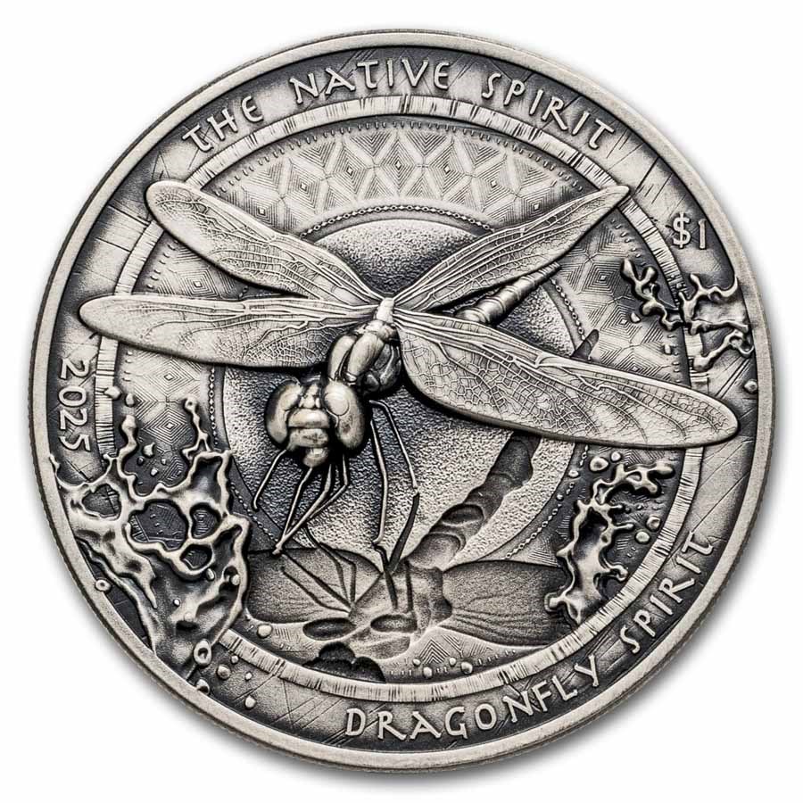 Należąca do serii Spirit of Native Peoples srebrna moneta z 2025 roku jest wybita z 1 uncji srebra o próbie 0,999 i przedstawia symboliczną ważkę. Moneta ta reprezentuje motywy zmiany, transformacji i wewnętrznego rozwoju związane z tym stworzeniem. Antyczne wykończenie nadaje projektowi charakterystyczną głębię i wyrazisty charakter. Rewers przedstawia szczegółowy wizerunek ważki otoczonej elementami wodnymi, podkreślając jej naturalne środowisko. Kompozycja łączy symboliczne znaczenie z drobnym grawerunkiem i wyważonym wzornictwem. Nakład jest ograniczony do 2500 sztuk na całym świecie.