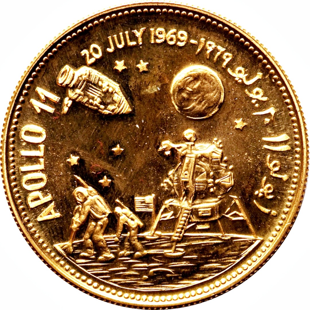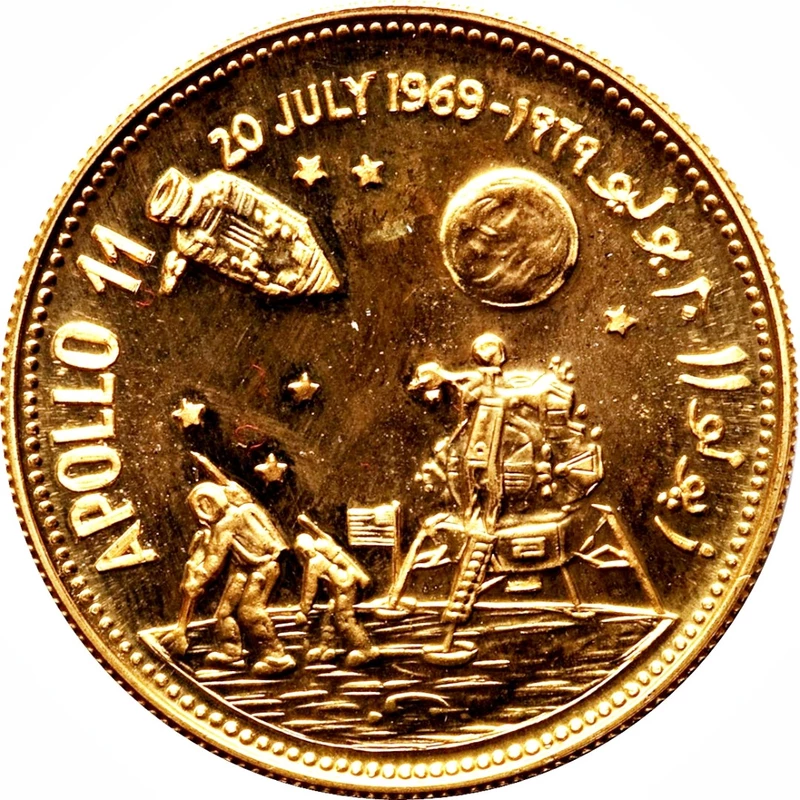 Złota moneta Jemen "Lądowanie na Księżycu Apollo 11" 1969, 17,64 g czystego złota (próba 0,900).