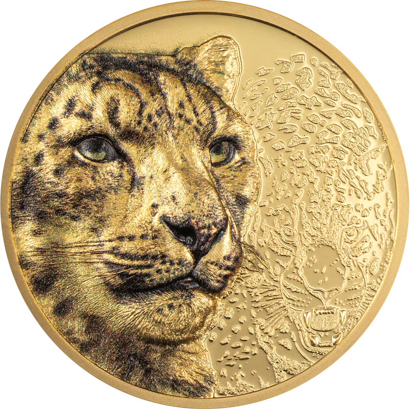 Złota moneta Mongolii "Śnieżna Pantera" (dowód), 2024 r., 31,1 g czystego złota (próba 0,9999).