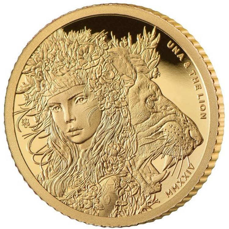 Złota moneta Świętej Heleny "Una i Lew" (dowód) 2024, 0,5 g czystego złota (próba 0,999).