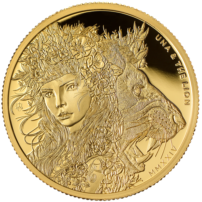 Złota moneta Świętej Heleny "Una i Lew" (dowód) 2024, 31,1 g czystego złota (próba 0,9999).